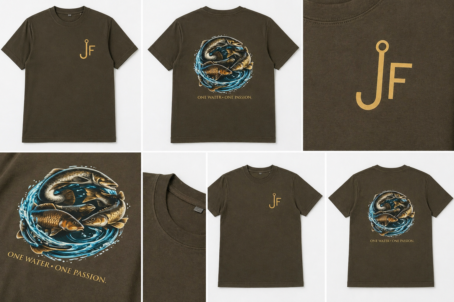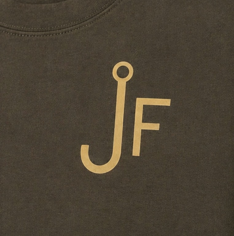Logo JF s háčikom reprezentuje spojenie s vodou a vášňou pre rybárstvo. Zadná strana hovorí jasne: